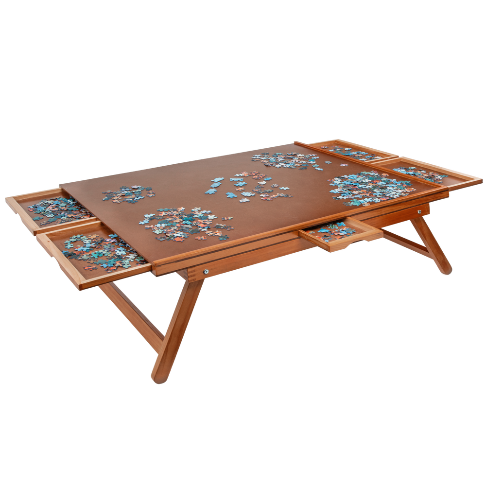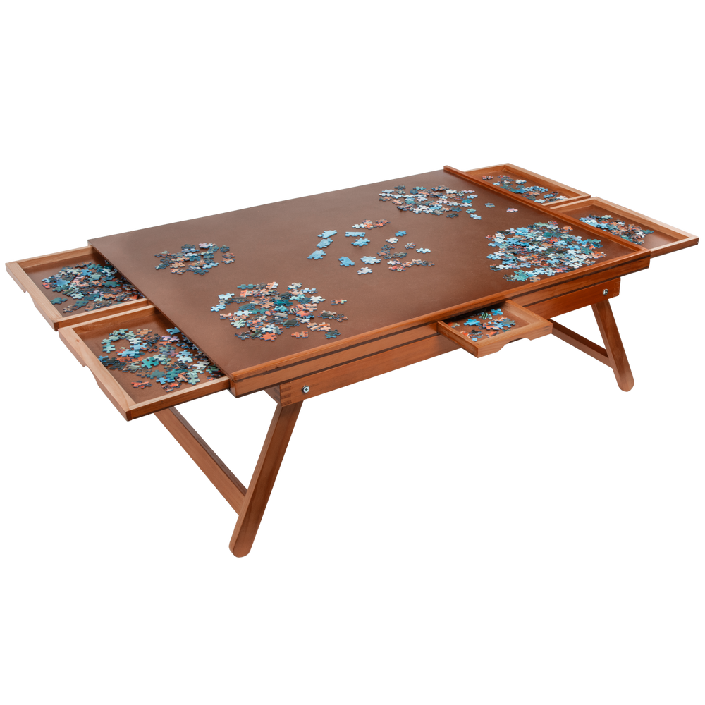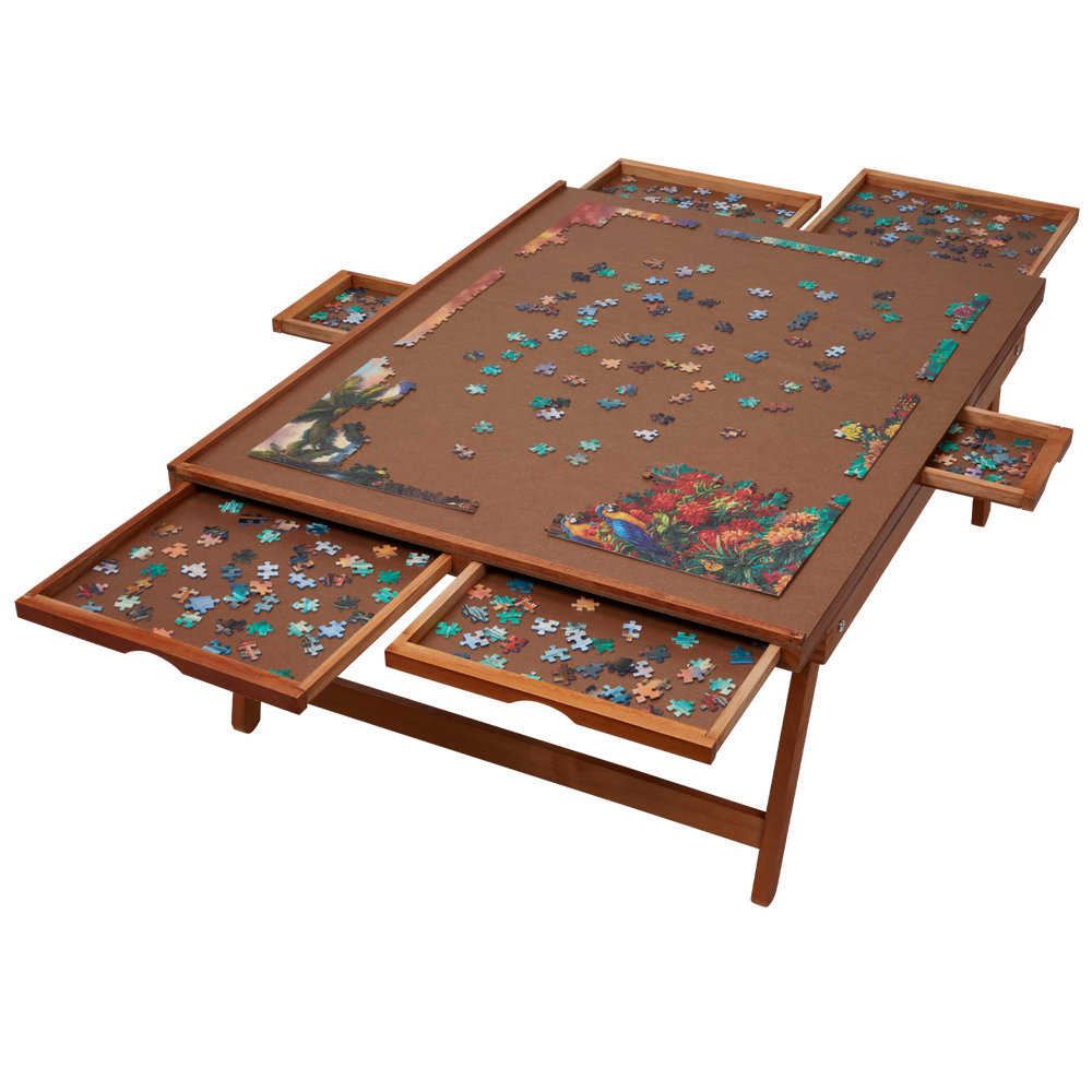 Working with puzzles has never been easier. The Jumbl Freestanding Wooden Puzzle Board with Foldable Legs and 6 Storage Drawers makes the process of puzzle solving less preposterous. The portable design of this puzzle board lets you take your special hobby anywhere you go. Have fun completing puzzles at home, in the park, at a party, and many other places.