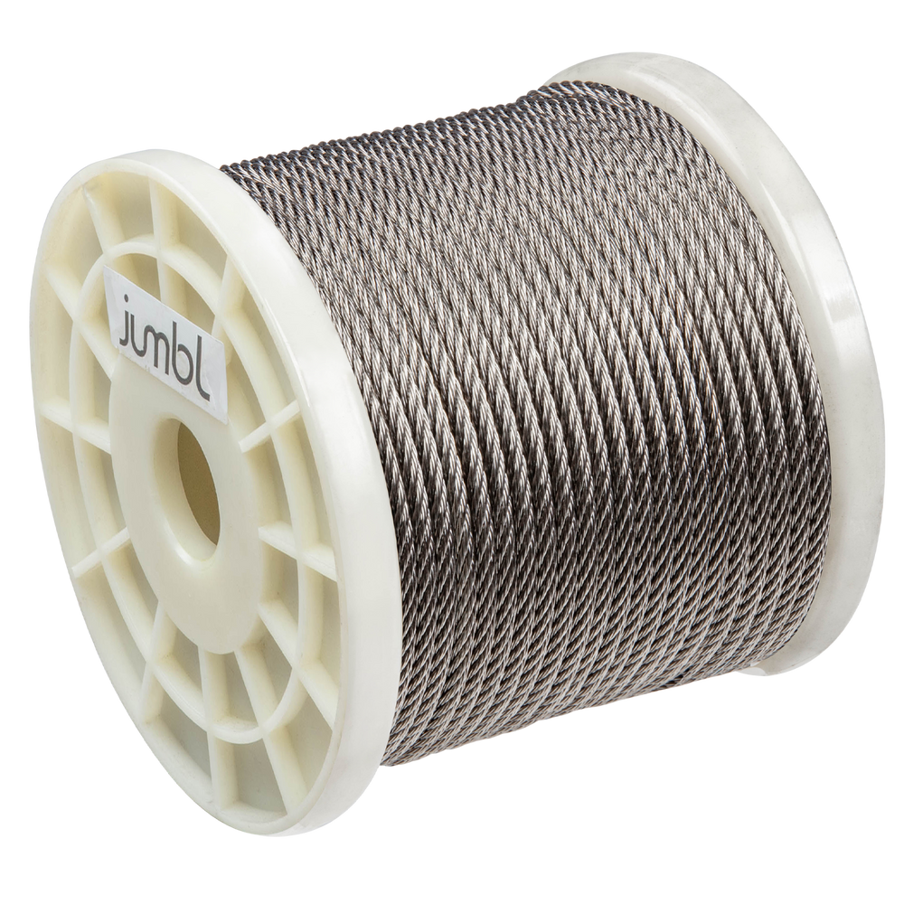 Hold everything together with the Jumbl 316 Grade Stainless-Steel Wire Rope, 100 Ft. Use this heavy-duty rope when working with hefty materials. This stainless-steel wire rope is great for fencing and hanging things you want to stay perfectly in place. With breaking strength of 1,510 lbs. this is the type of reliable rope you do not have to worry about snapping.