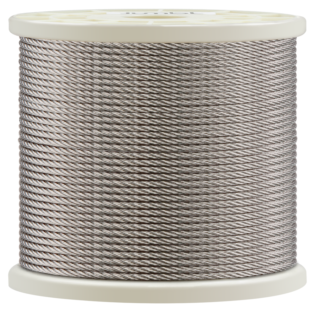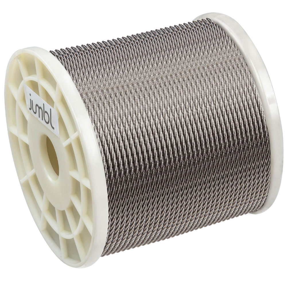 Hold everything together with the Jumbl 316 Grade Stainless-Steel Wire Rope, 750 Ft. Use this heavy-duty rope when working with hefty materials. This stainless-steel wire rope is great for fencing and hanging things you want to stay perfectly in place. With a breaking strength of 1,510 lbs., this is the type of reliable rope you do not have to worry about snapping.