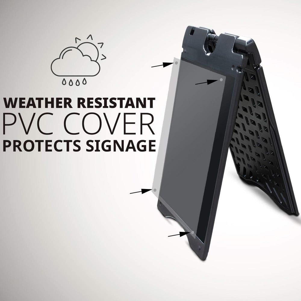 Weather resistant – Includes a waterproof PVC cover to protect your signs and a water-filling base to resist strong winds