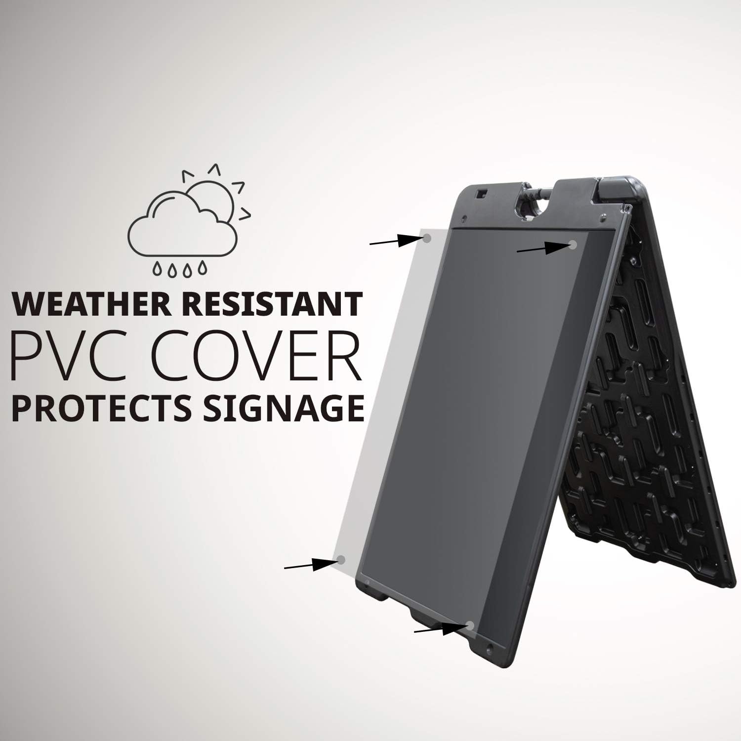 Weather resistant – Includes a waterproof PVC cover to protect your signs and a water-filling base to resist strong winds