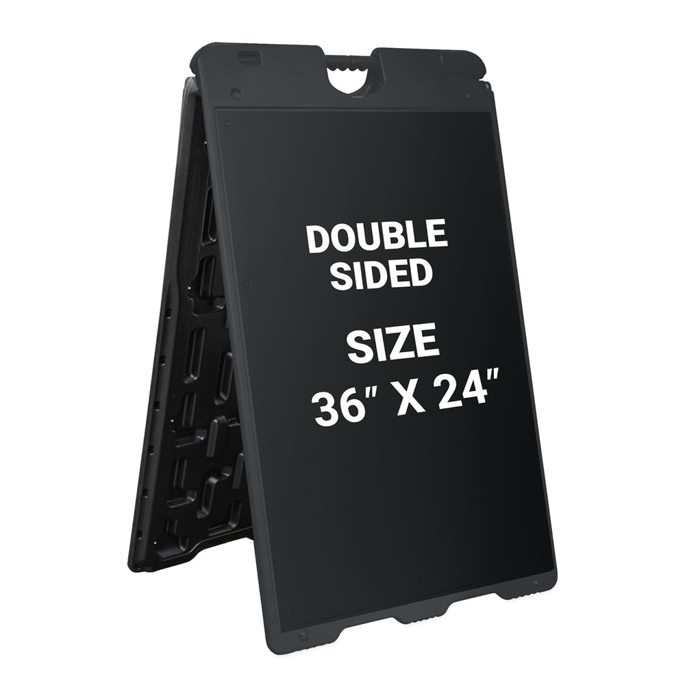 Present your message to the world with the Jumbl Large Weather-Resistant A-Frame Signboard. Whether it is an advertisement, warning, or just a simple greeting, this signboard is great to get your message across, rain or shine. Simply set up the sign and place your poster on the board. With the product’s double-sided design, you can have the same or two different posters on each side.