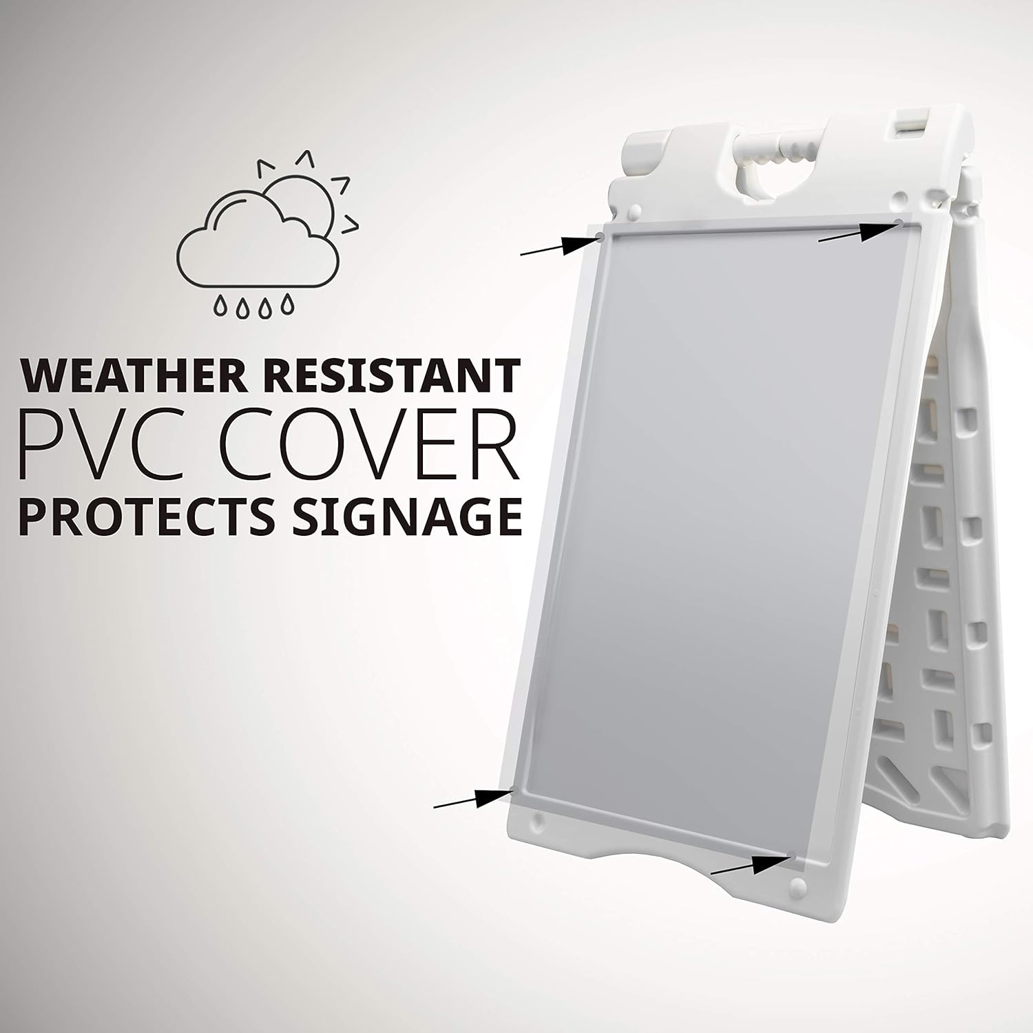 Weather resistant – Includes a waterproof PVC cover to protect your signs and a water-filling base to resist strong winds