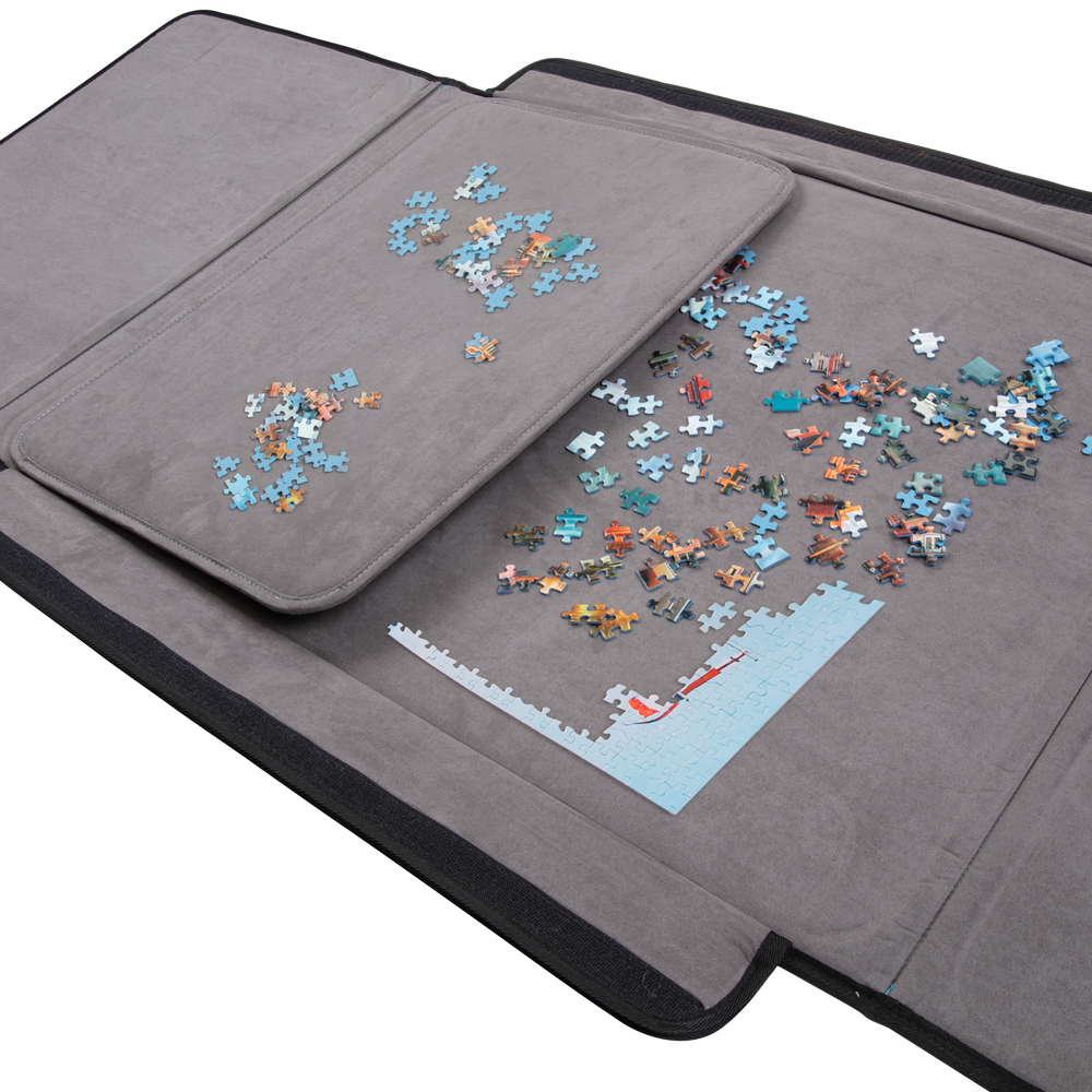 Save and resume – The firm, soft material of the puzzle board keeps pieces still. So, you can fold up your board and store away. Then, when you ready take out the puzzle and continue where you left off.