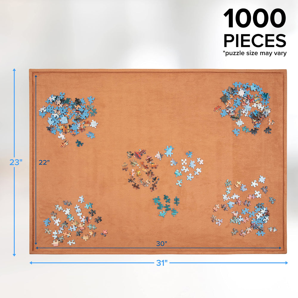 Discover a dependable surface for sorting, assembling, storing, and transporting with the Soft Jigsaw Puzzle Board from Jumbl. This convenient system serves as an all-in-one puzzle organizer workstation, giving you ample space to spread out your supplies and save your progress for future play. Our lightweight portable puzzle board arrives with an anti-skid wool platform with room to assemble images up to 1,000 pieces. The exterior’s textured design and raised edging ensure your pieces won’t slip or slide, while the 1000 piece puzzle board's lightweight core makes moving and maneuvering the puzzle a breeze. An essential for students, teachers, family game nights, puzzle meet-ups, and on-the-go gamers, this portable puzzle mat provides a priceless ‘piece’ of mind. Add a Jumbl Soft Portable Puzzle Table to your cart today!
